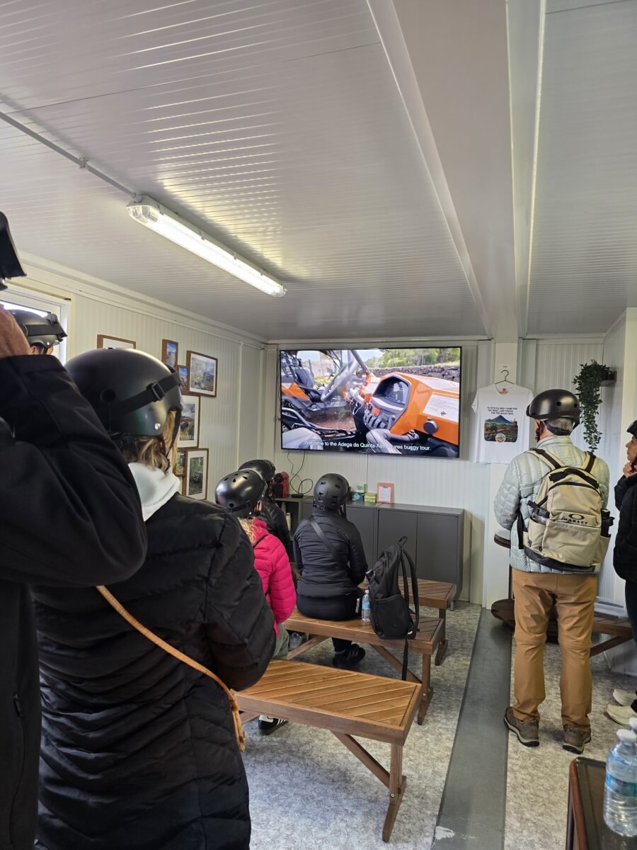 The Team Adega da Quinta Adventures He awaited his adventurers at the pier and, with his transfers, led them to the stand to equip the tourists for the upcoming adventure. Helmets and goggles chosen and briefing attended, it was time to begin the activity.